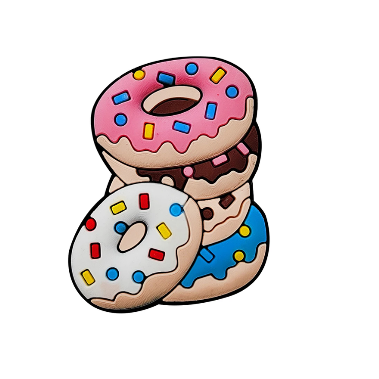 A sweet stack of colorful donuts that adds a playful treat-inspired touch to any bottle.